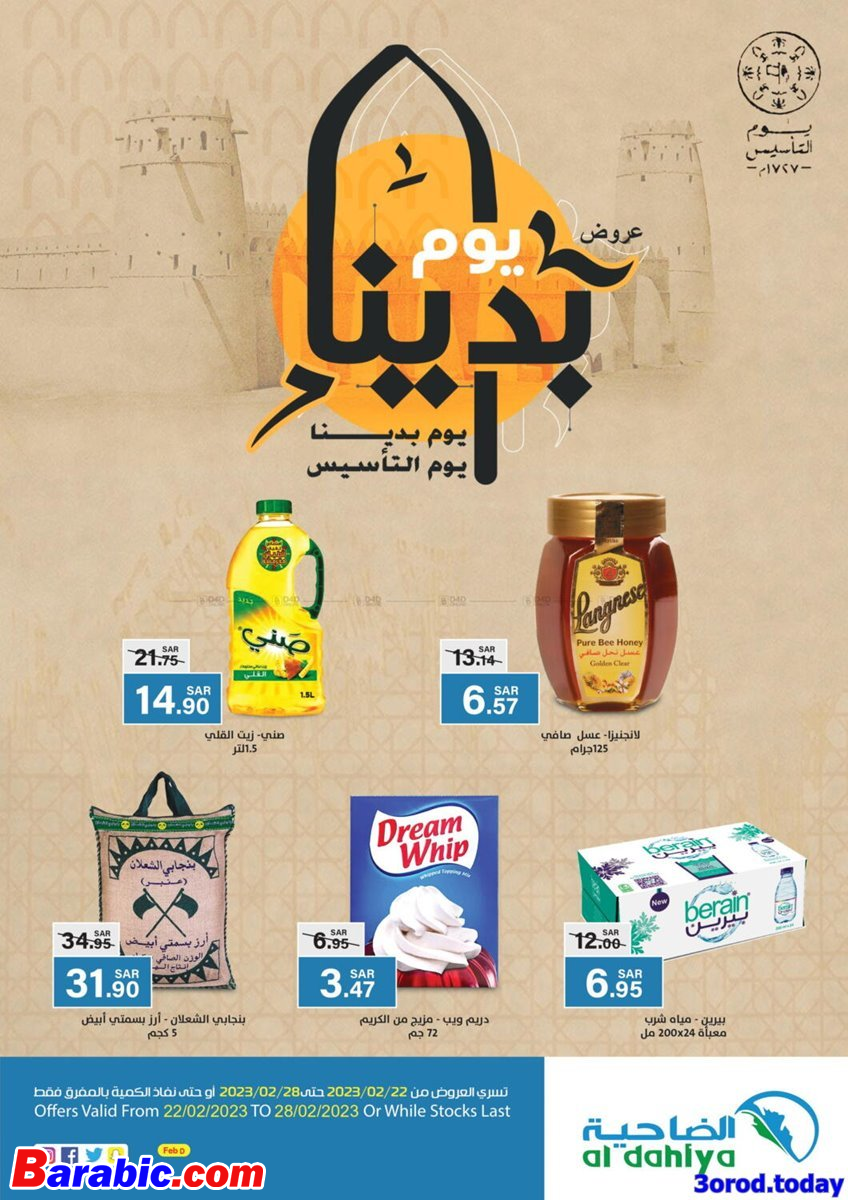 نتابع مع سياداتكم عروض يوم التأسيس في اسواق الضاحية اليوم الأربعاء 1444 22-فبراير-2023م و التي تحتوي اليوم علي الذ و اطيب المنتجات المتنوعة الطازجة منها الخضروات و الفواكه و كذلك الكثير من الأدوات و الأجهزة المنزلية الضرورية .
