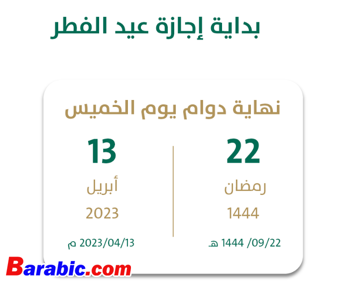 إجازة عيد الفطر 1444 للموظفين الحكوميين