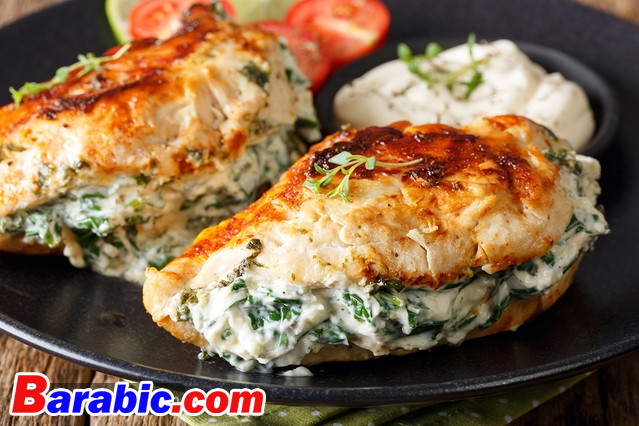 الوصفة الخامسة الدجاج المحشو بالسبانخ والجبن